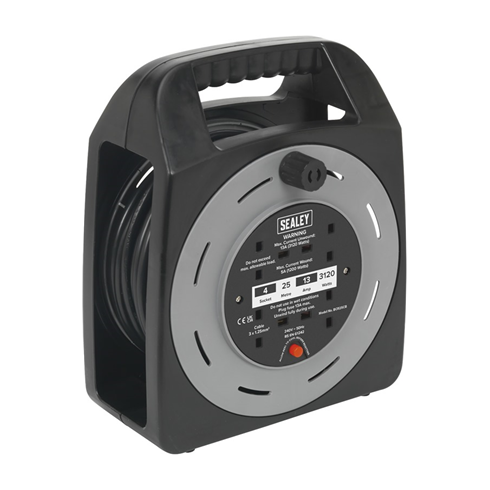 Sealey BCR25CB Cable Reel Box Type 25mtr 4 x 230V 1.25mm² Thermal Trip